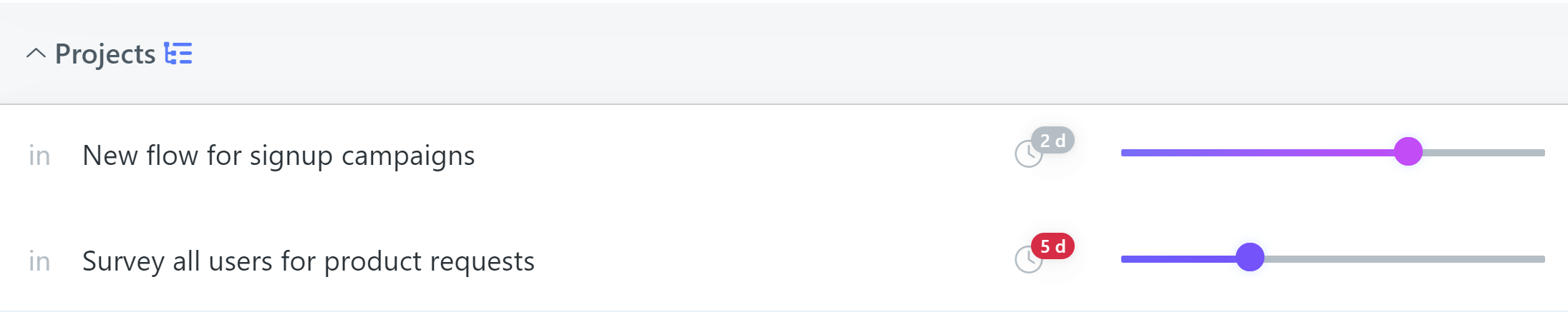 Projects now have due date setting in their right side 3 dots overflow menu. Once set you'll see it next to it's progress bar. After the due date passes the badge indicator turns red. For now the due date does not affect showing the project in next quarter, but in upcoming releases if you set it in future, it's shown in all quarters until that future due date. We'll also make the Projects graphs dependent on due dates in the future.