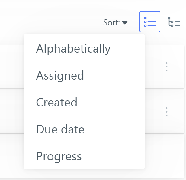 There's an improved This level / All sublevels selection and at top right of the projects list in Projects tab view there are 2 icons for condensed and tree views. When you then choose the first, condensed view, there is an option for sorting and ordering the list.